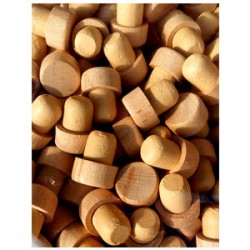Esztergált keményfa tetőben „ül“ egy 19,5 mm átmérőjű kolmatált parafa dugó.